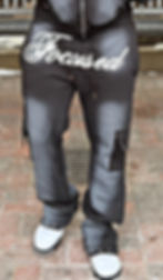 Satin lightweight jacket with all embroidery logos & Matching stacked cargo sweat pants with extra side pockets for extra storage